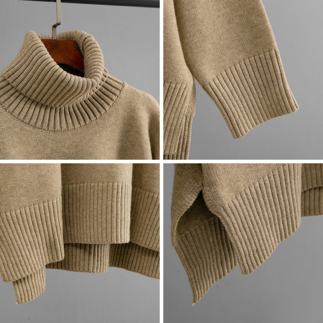 Stay warm and stylish with our Womens Fall Winter Heavyweight Turtleneck Sweater, featuring a solid color design and chic side slits for a modern touch of elegance and comfort.
