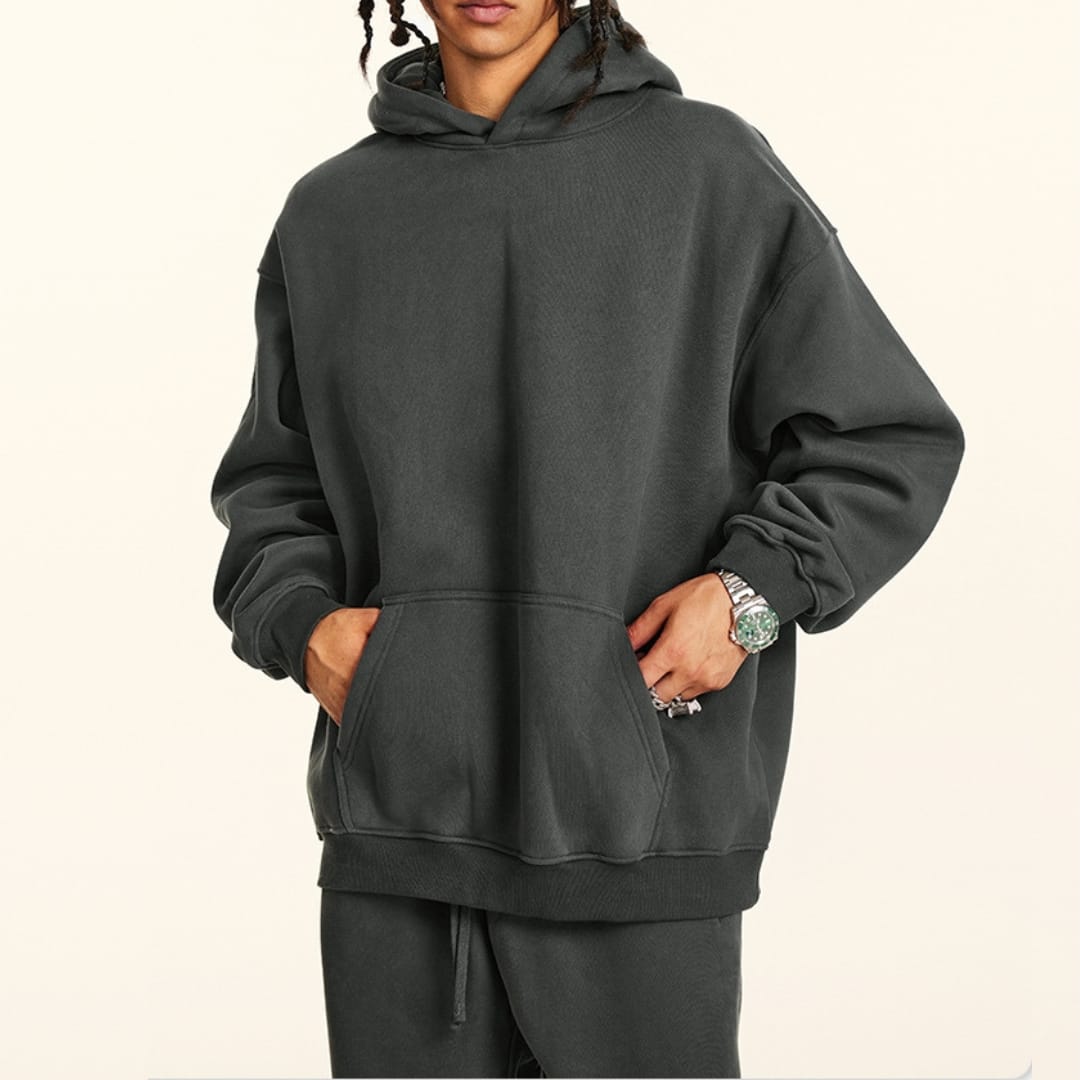 Stay warm and stylish in this Fall/Winter Loose Fit Unisex Fleeced Hoodie, featuring a cozy interior, relaxed silhouette, and convenient kangaroo pockets for everyday comfort.