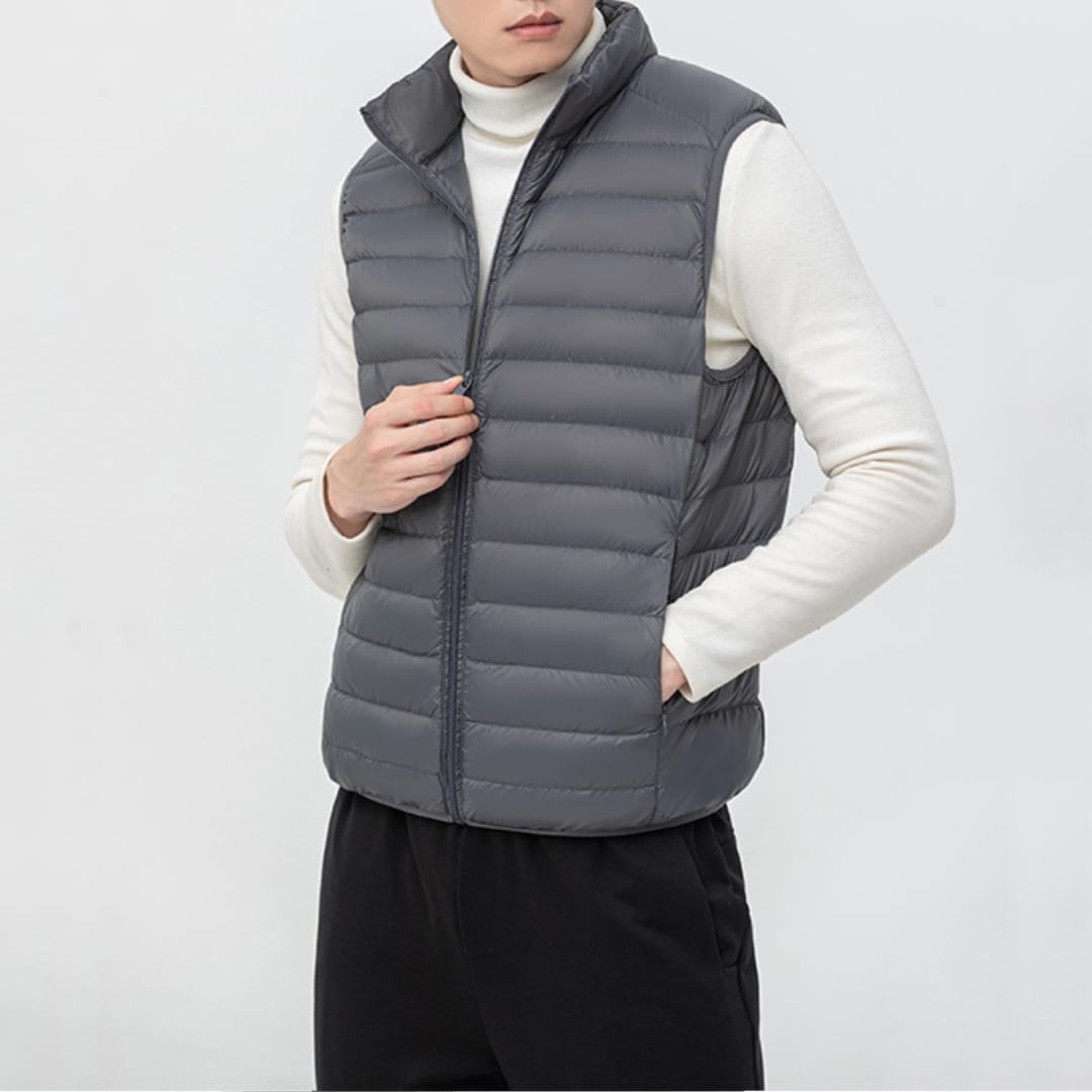 Upgrade your cold-weather wardrobe with this Mens Autumn Winter Down Vest, crafted for warmth, comfort, and versatility. Filled with high-quality down insulation, it provides excellent heat retention while remaining lightweight and easy to layer. The sleeveless design allows full freedom of movement, making it ideal for pairing over shirts, sweaters, or hoodies during cooler days. Its streamlined silhouette delivers a modern, clean look suitable for casual wear, outdoor activities, or travel. Durable construction ensures long-lasting performance, while the practical design offers everyday functionality. A seasonal essential, this down vest combines warmth, style, and convenience for autumn and winter.