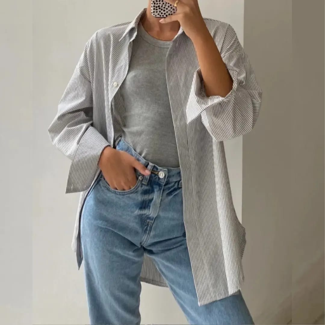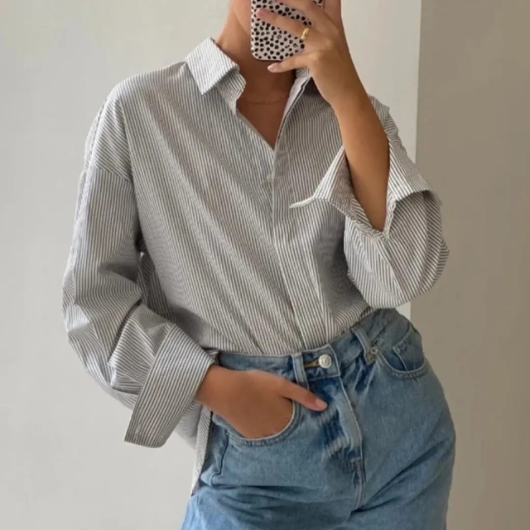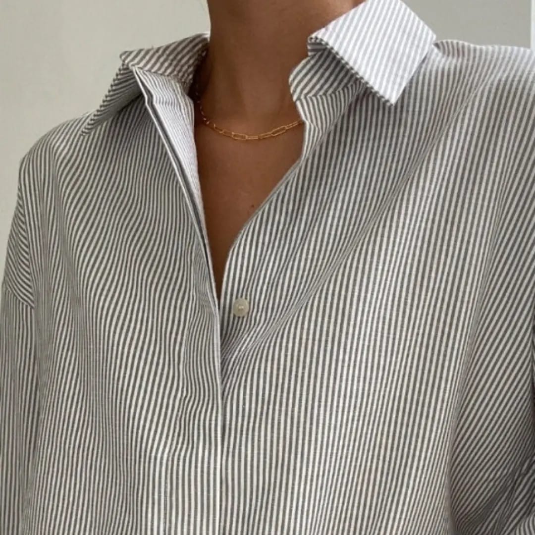 Elevate your wardrobe essentials with this Women’s Vertical Striped Pure Cotton Shirt. Made from 100% pure cotton fabric, it offers exceptional breathability and comfort throughout the day. The vertical stripe pattern adds a touch of sophistication while creating a flattering silhouette. Designed with a classic collar, button-down front, and tailored fit, this shirt is perfect for both professional and casual occasions. Pair it with trousers, skirts, or jeans to create versatile, timeless outfits.