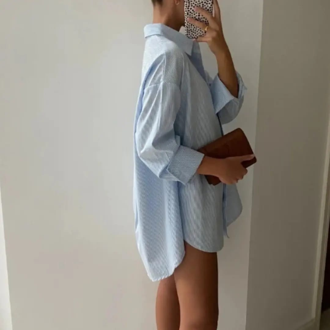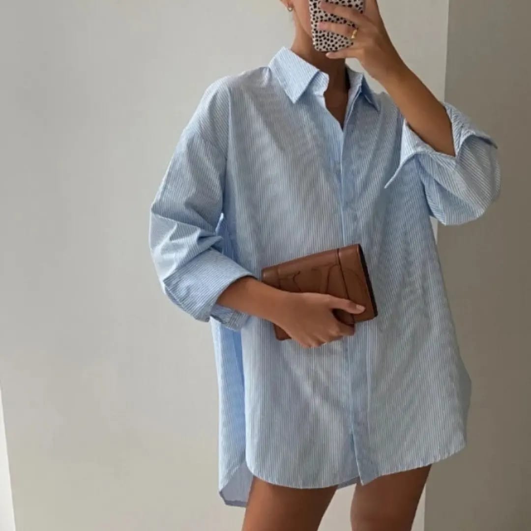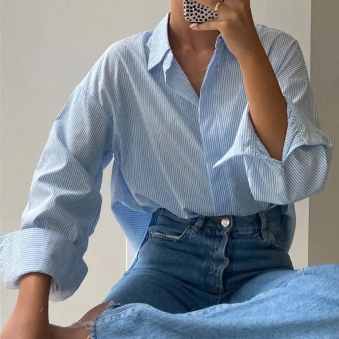 Elevate your wardrobe essentials with this Women’s Vertical Striped Pure Cotton Shirt. Made from 100% pure cotton fabric, it offers exceptional breathability and comfort throughout the day. The vertical stripe pattern adds a touch of sophistication while creating a flattering silhouette. Designed with a classic collar, button-down front, and tailored fit, this shirt is perfect for both professional and casual occasions. Pair it with trousers, skirts, or jeans to create versatile, timeless outfits.
