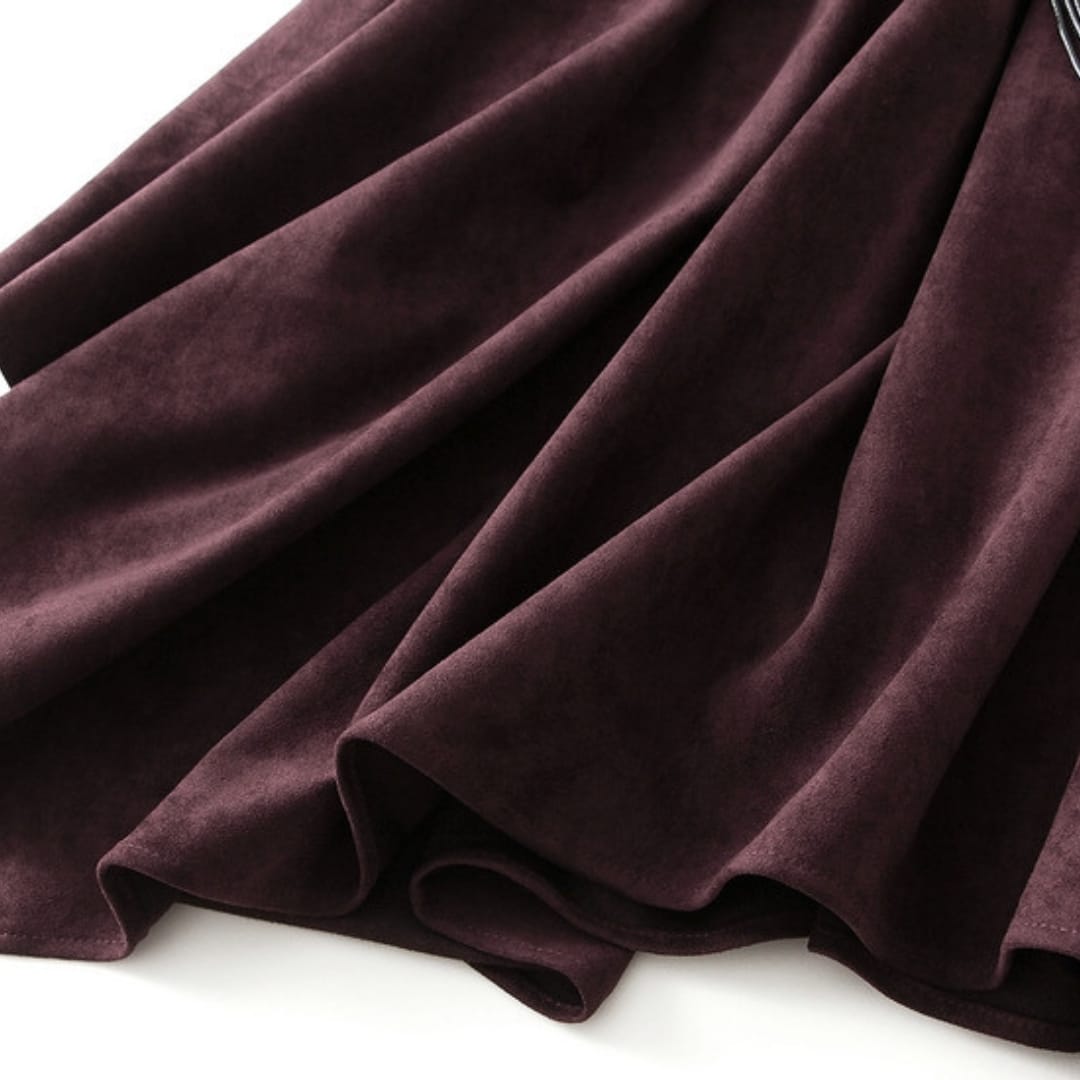 Vintage Suede Irregular Skirt With A Stylish Belt
