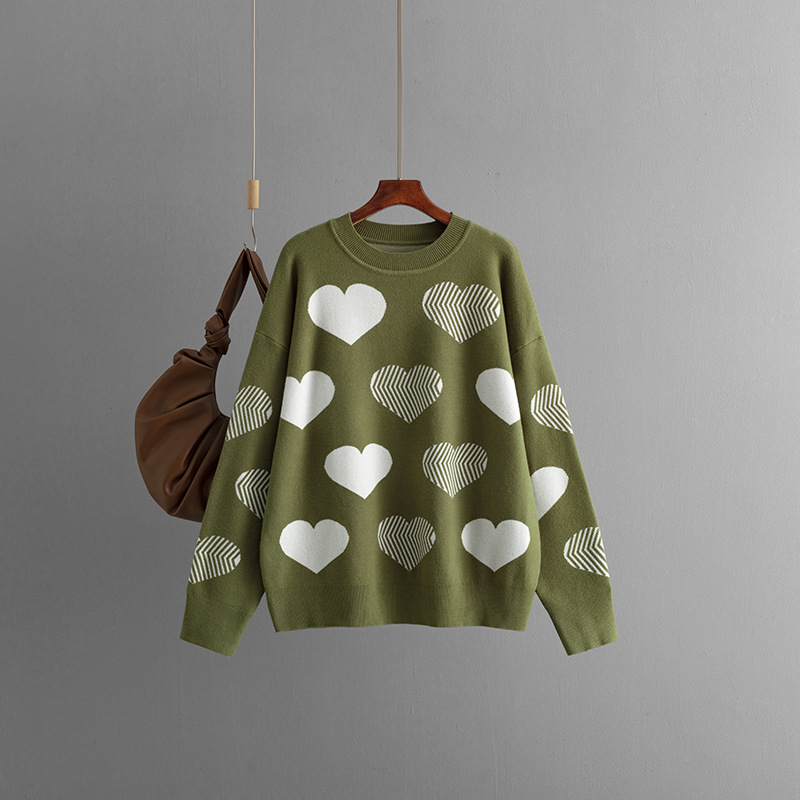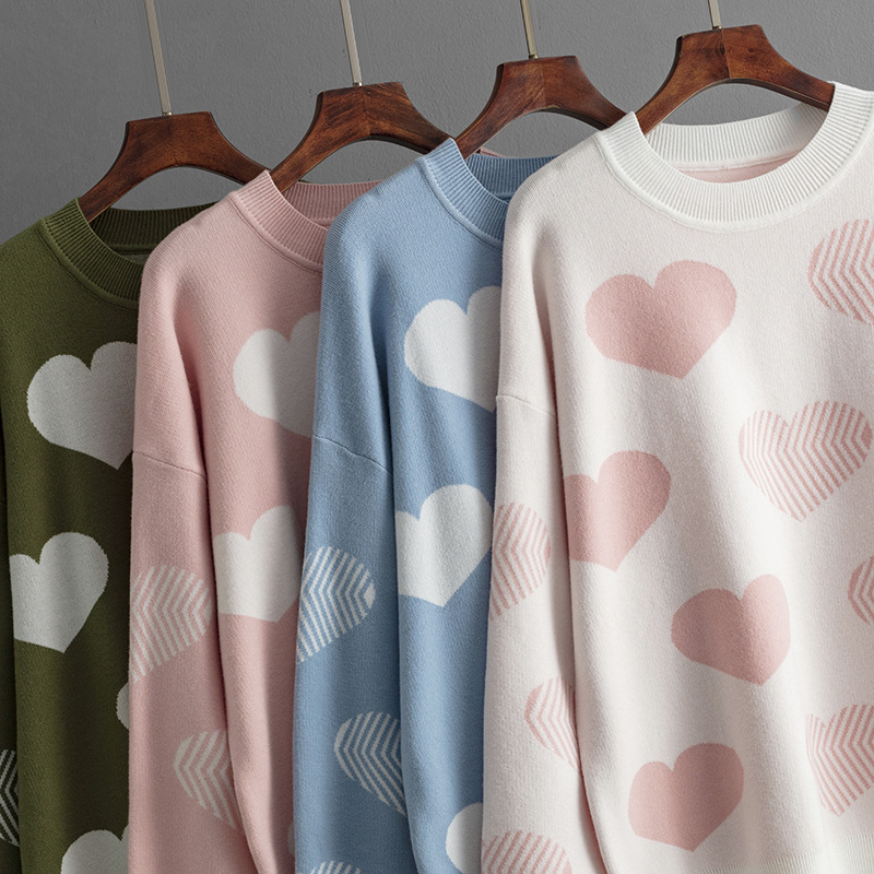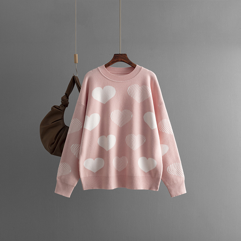 Bring warmth and sweetness to your wardrobe with this viscose sweater featuring adorable heart-shaped patterns. Made from soft and breathable viscose knit, it offers a lightweight yet cozy feel, perfect for layering in any season. The charming heart motifs add a playful, feminine touch, while the relaxed fit ensures all-day comfort. Ideal for casual outings, coffee dates, or cozy nights in, this sweater pairs effortlessly with jeans, skirts, or leggings for a stylish and heartwarming look.