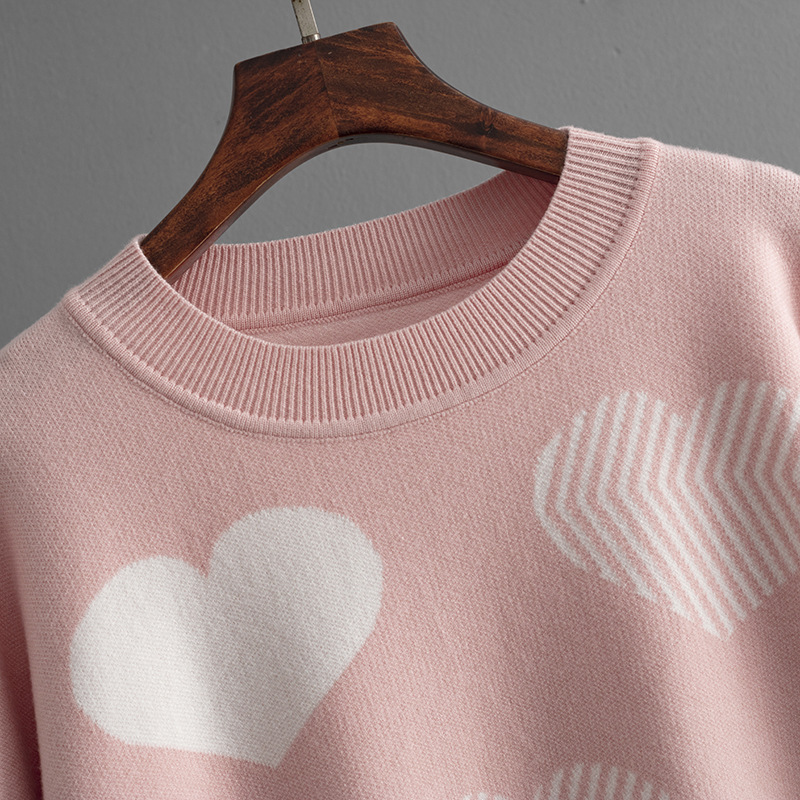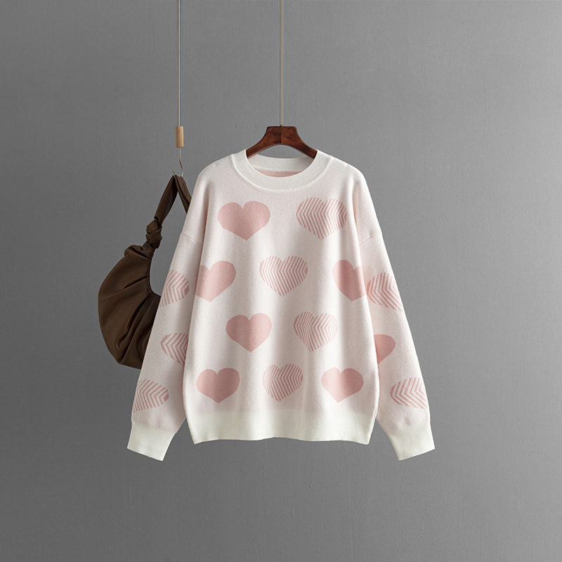 Cute and cozy, this viscose sweater with heart-shaped patterns adds a touch of charm to your everyday style.