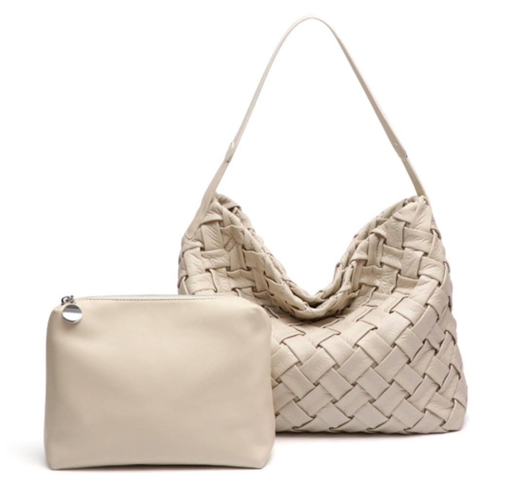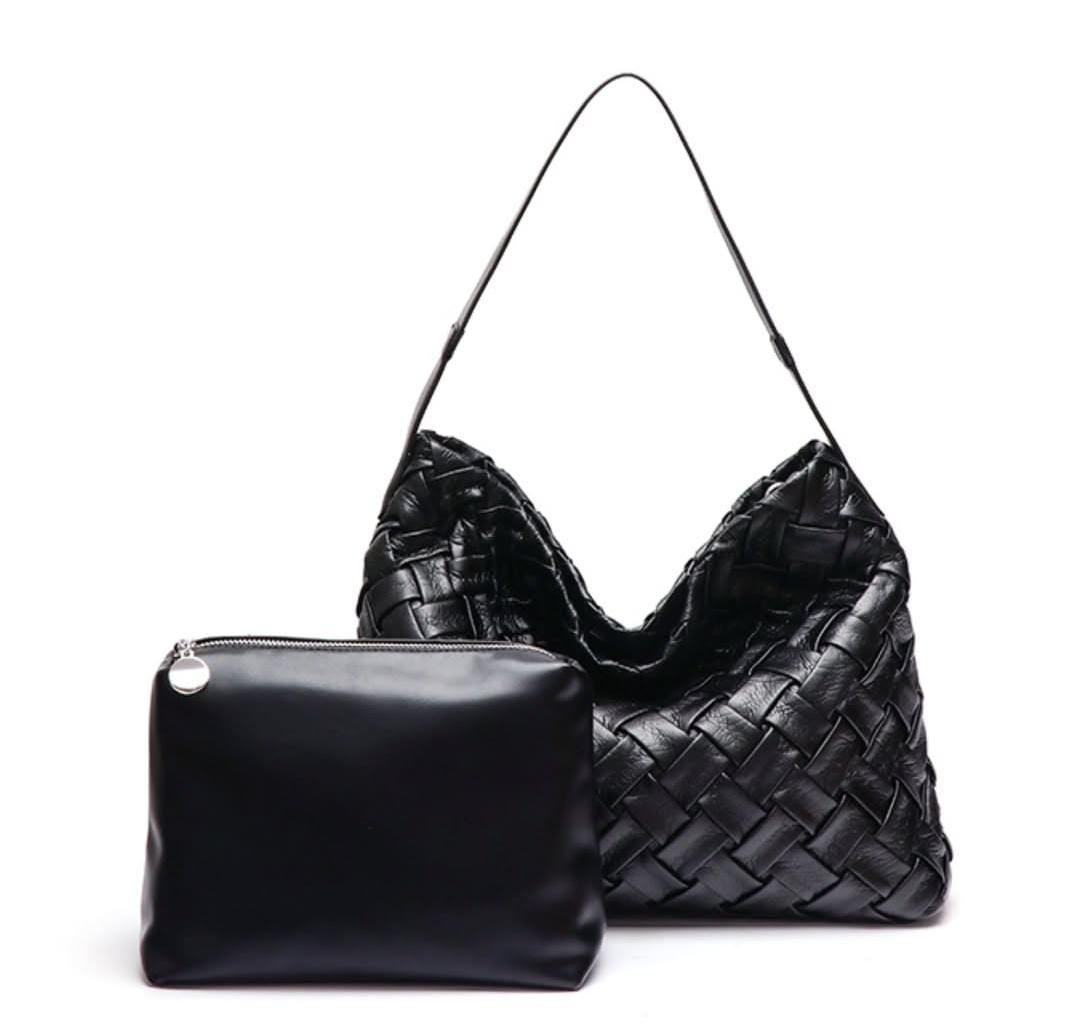 Weaved Faux Leather Bag with Plain Clutch