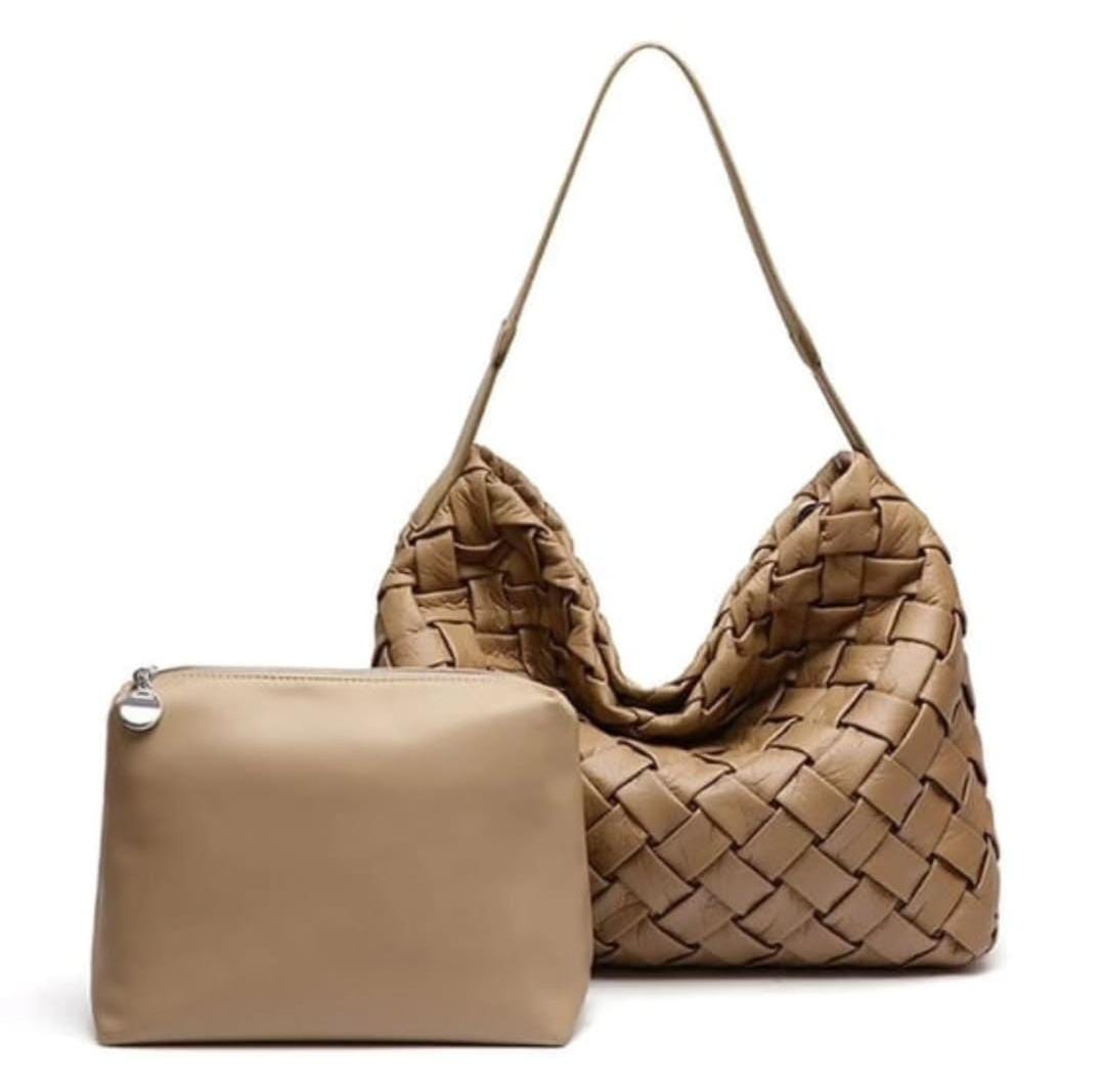 Stay chic and organized with this Women Weaved Faux Leather Bag featuring a matching plain clutch. Stylish, versatile, and perfect for everyday use or special occasions.