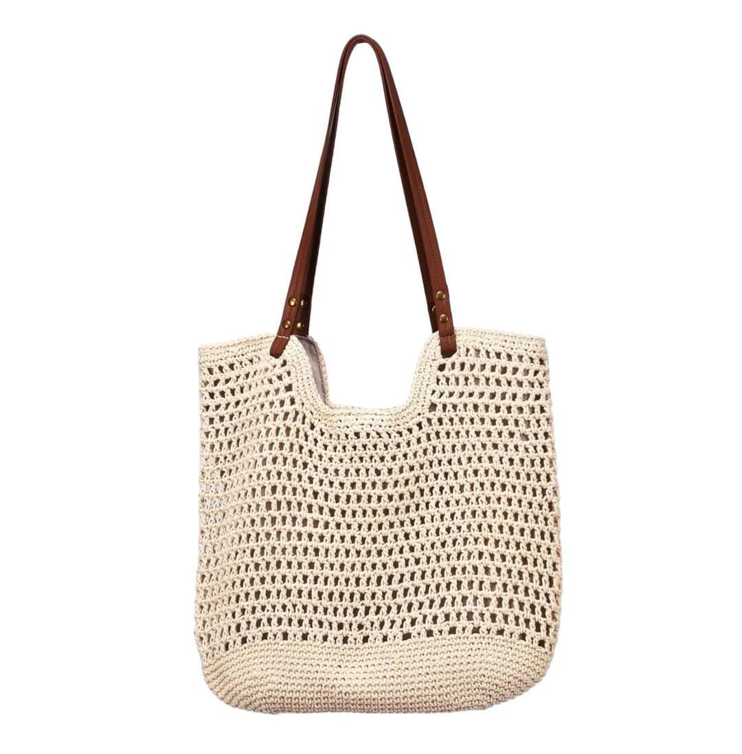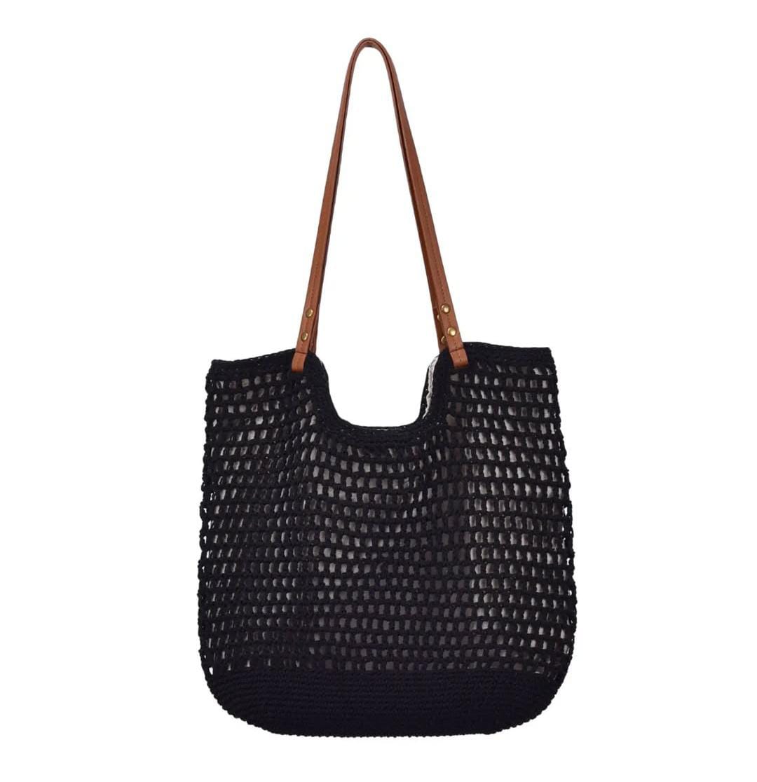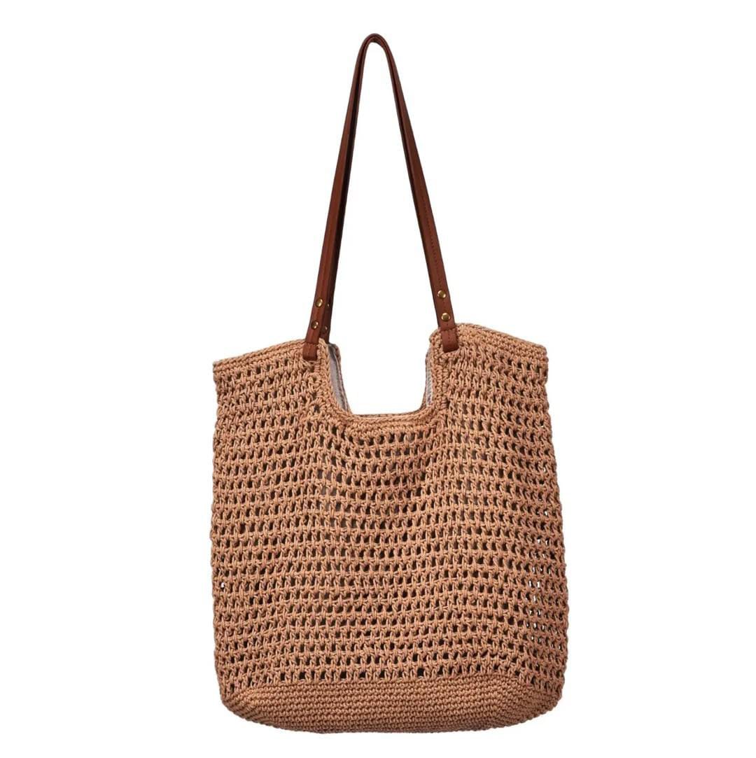 A stylish Womens Weaved Hollowouts Tote Shoulder Bag featuring intricate woven detailing, breathable hollowout design, and a spacious interiorperfect for daily use, beach trips, or summer outings.