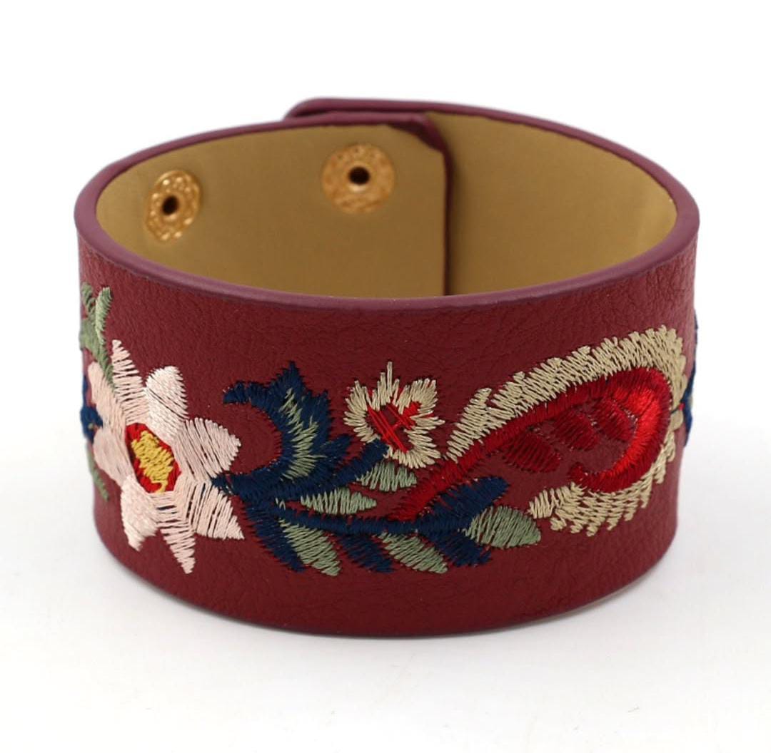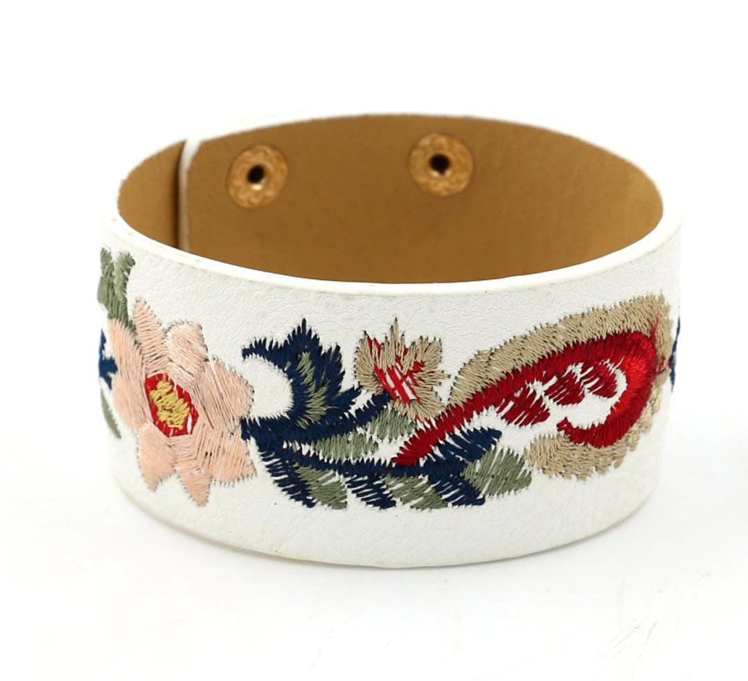 Wide Cuff Bracelet with Floral Embroidery