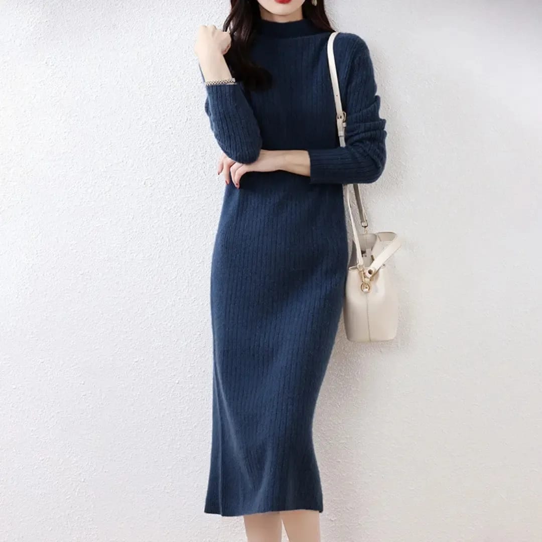 Elegant and cozy, this half turtleneck long sleeve dress is perfect for chic seasonal style.