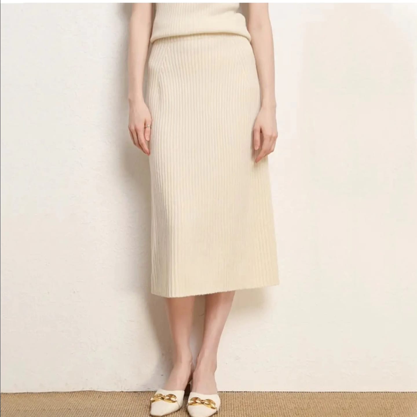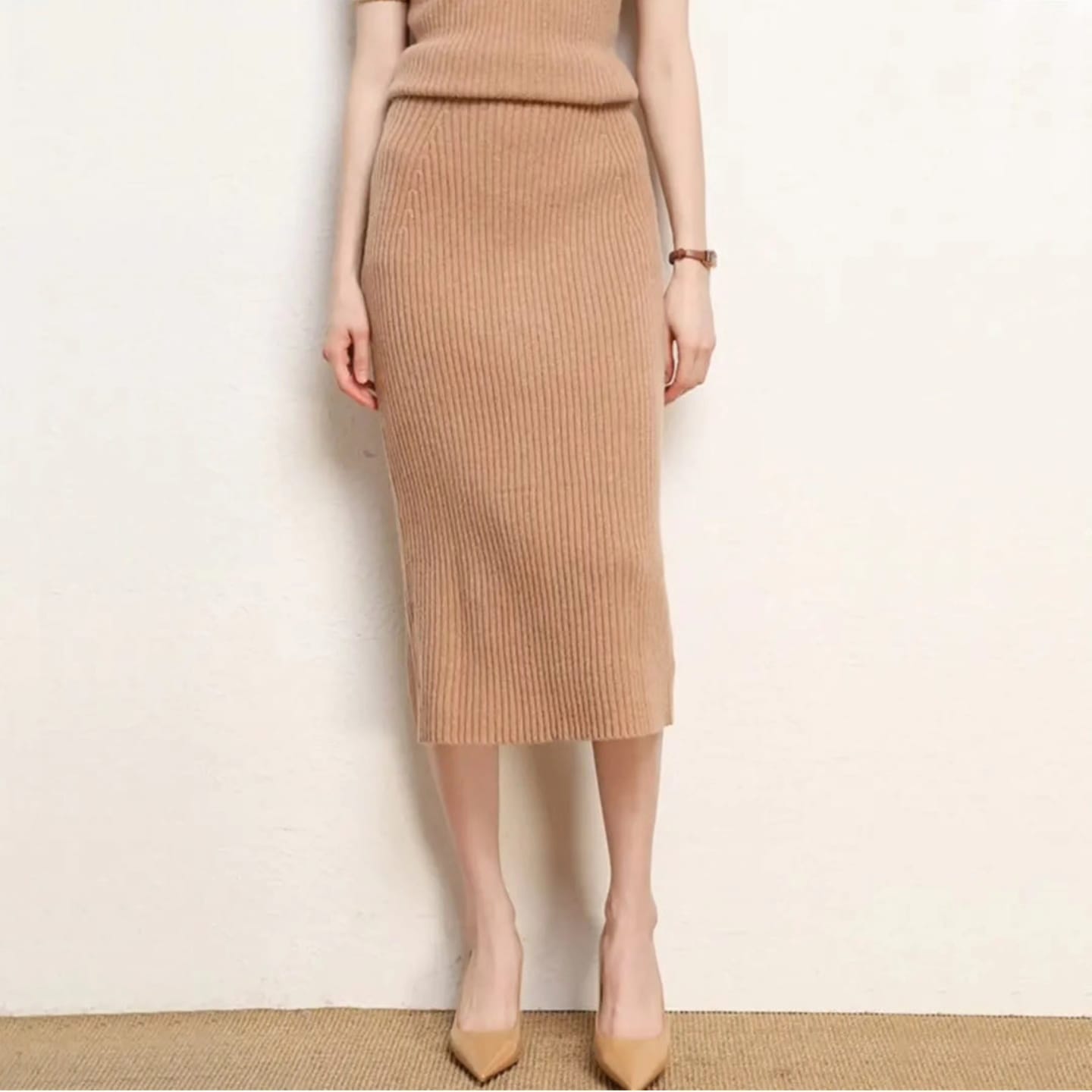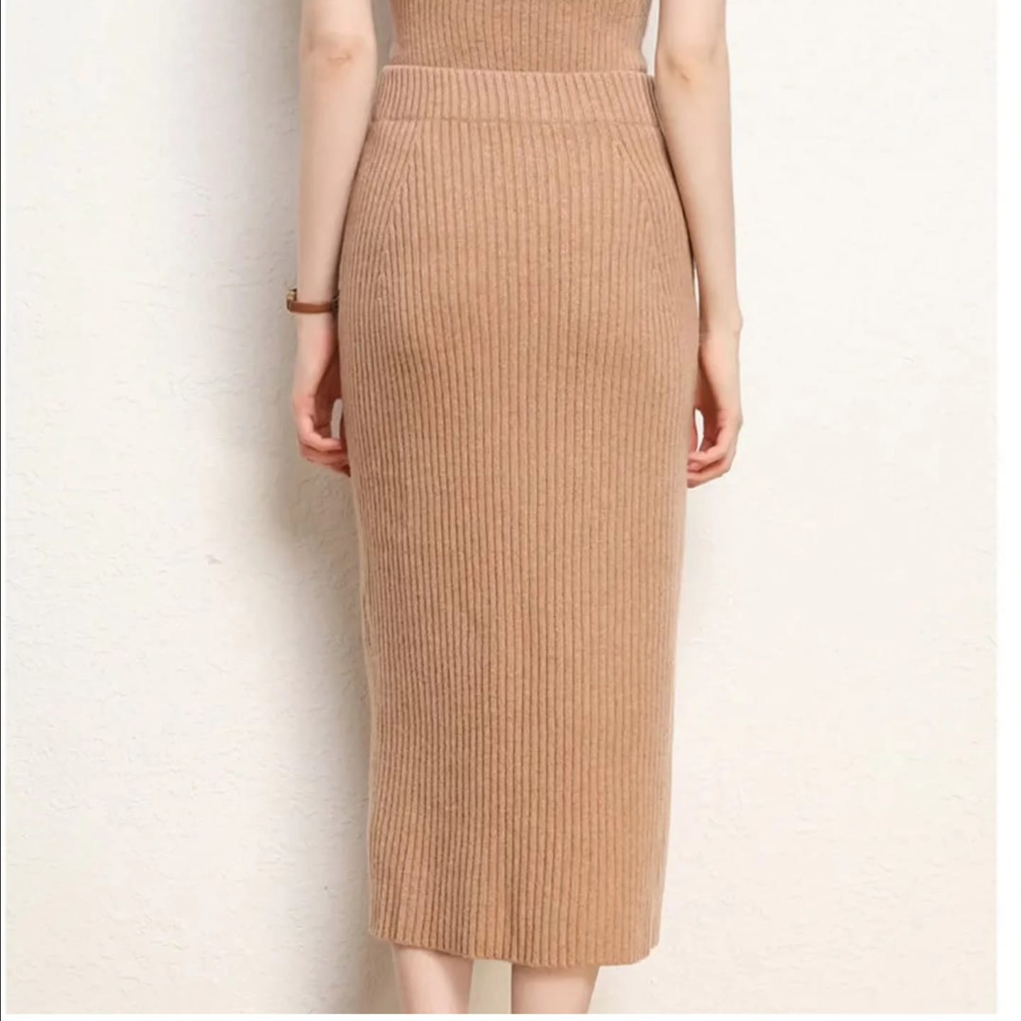 Cozy woolen knitted midi skirt for warmth and timeless style.