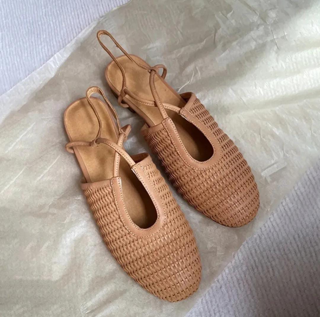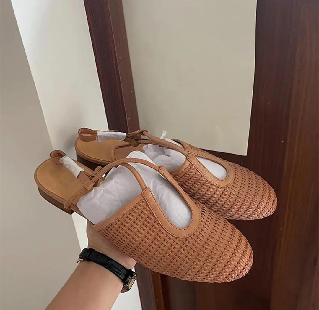 Step into effortless elegance with these Womens Woven Real Leather Criss Cross Flats, featuring soft genuine leather and a breathable woven design for all-day comfort.