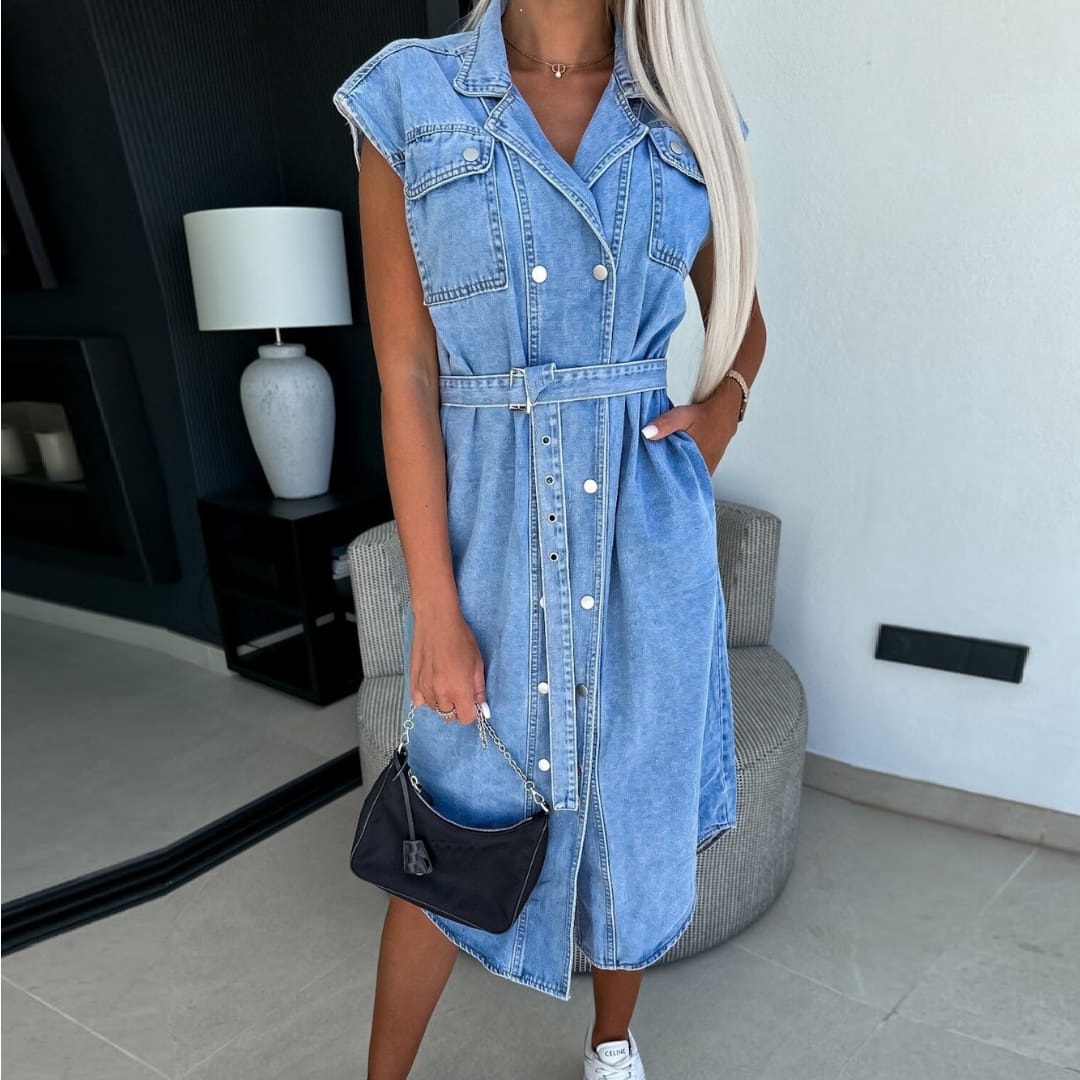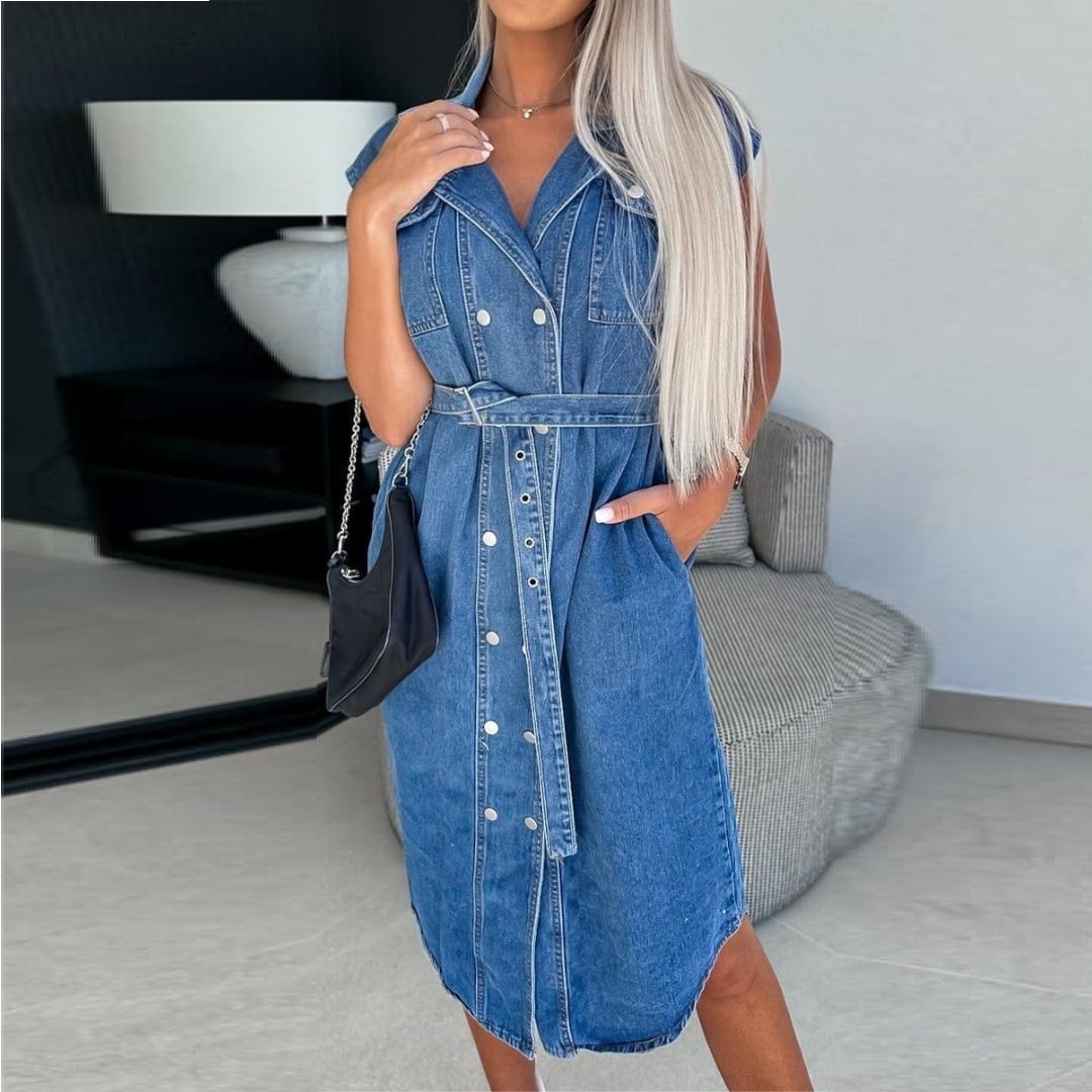 Step out in style with our Wrap Collared Denim Dress with Belt chic, structured, and perfect for casual days or dressed-up denim looks.