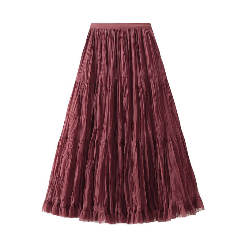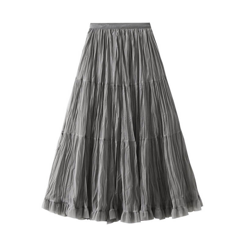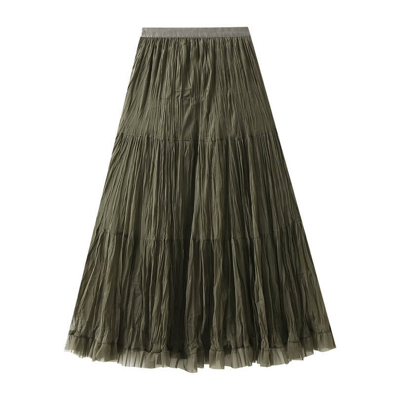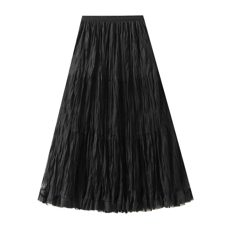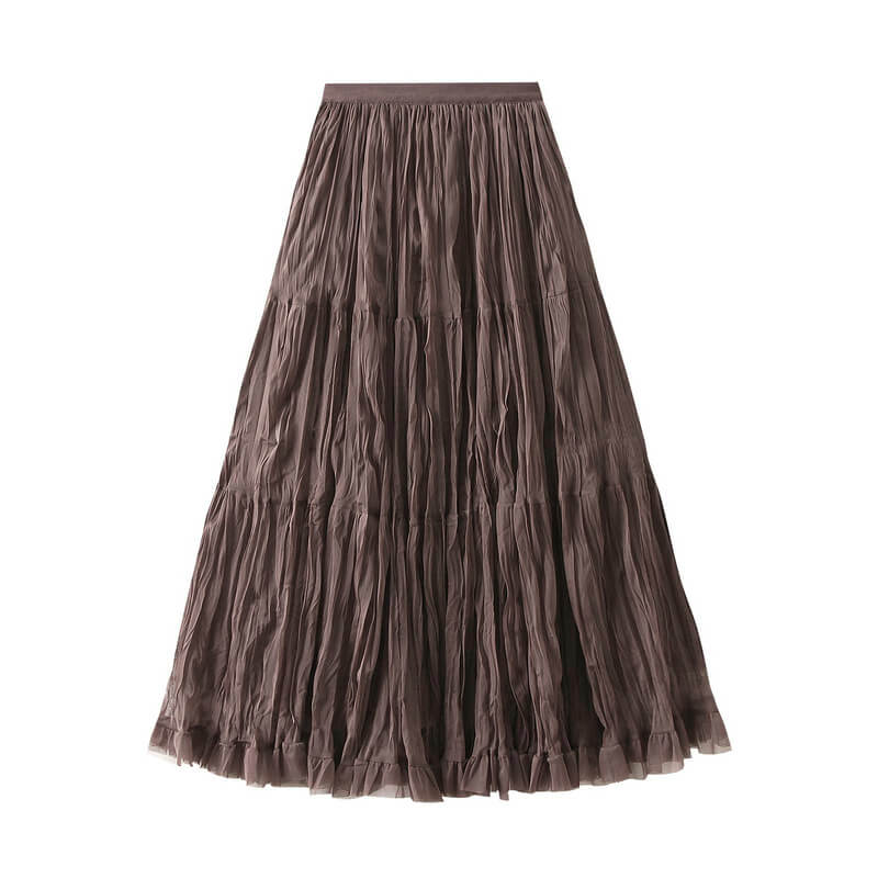 Elegant womens wrinkled chiffon panel long skirt featuring a flowy silhouette, lightweight feel, and graceful design perfect for casual, formal, or evening wear.