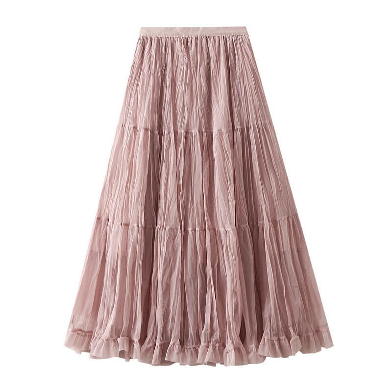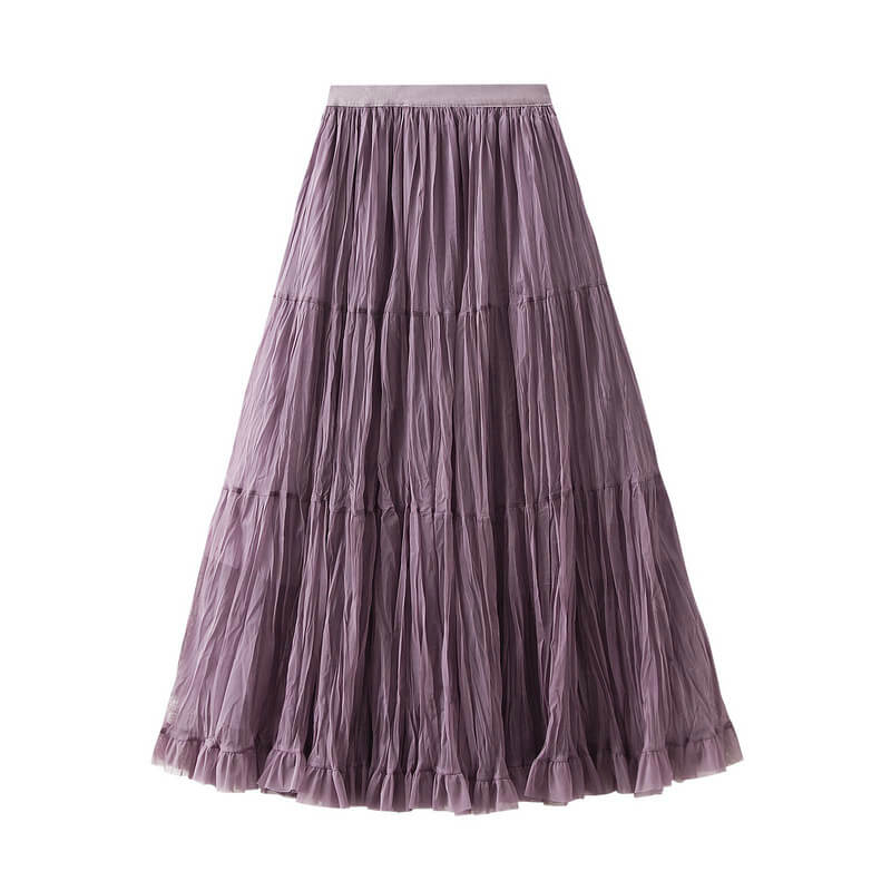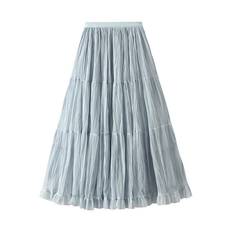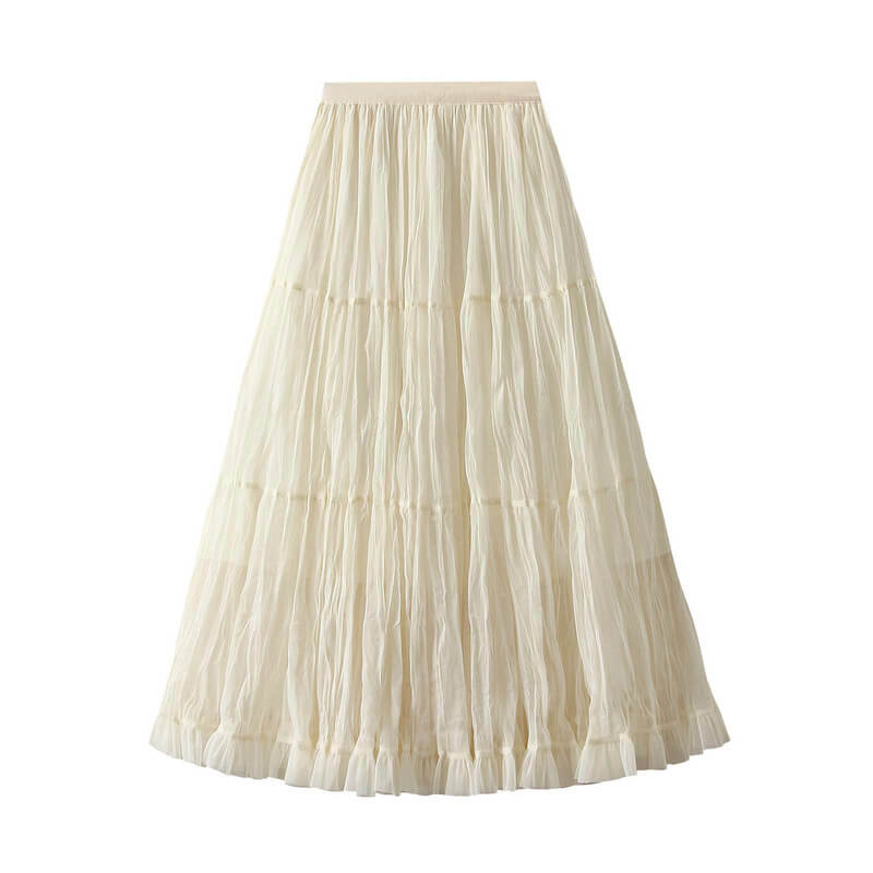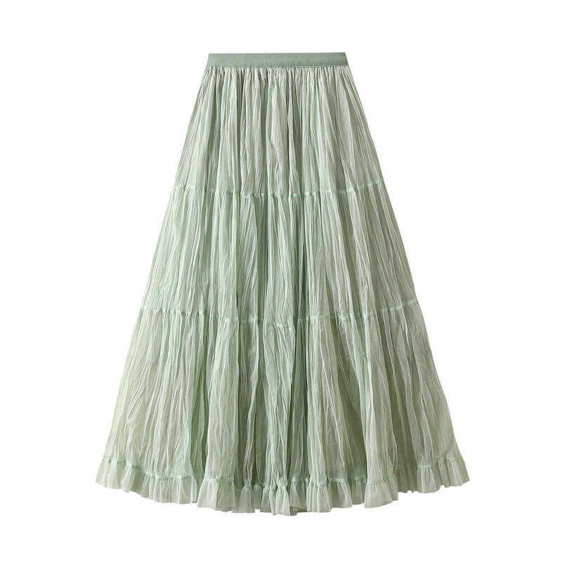 Elegant womens wrinkled chiffon panel long skirt featuring a flowy silhouette, lightweight feel, and graceful design perfect for casual, formal, or evening wear.