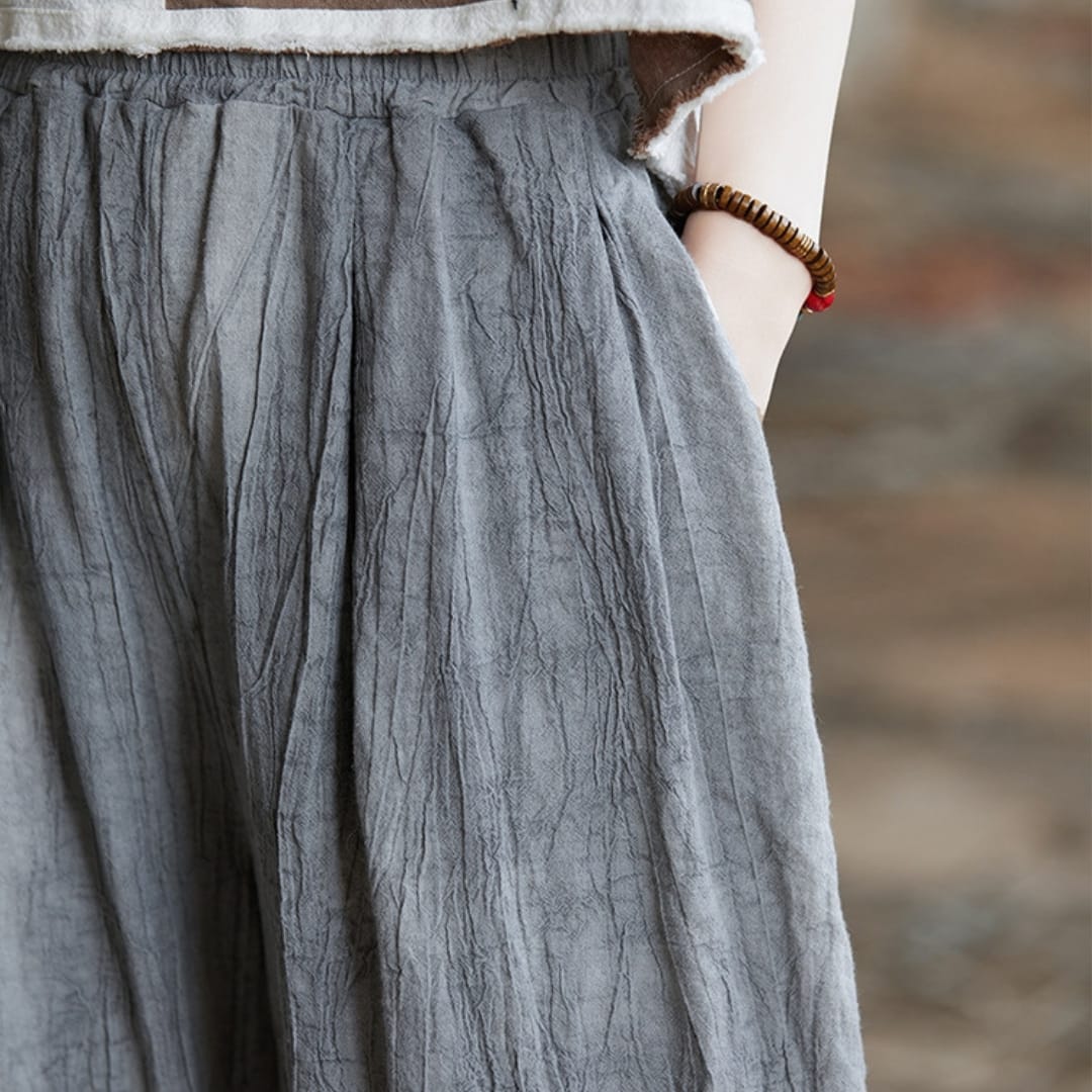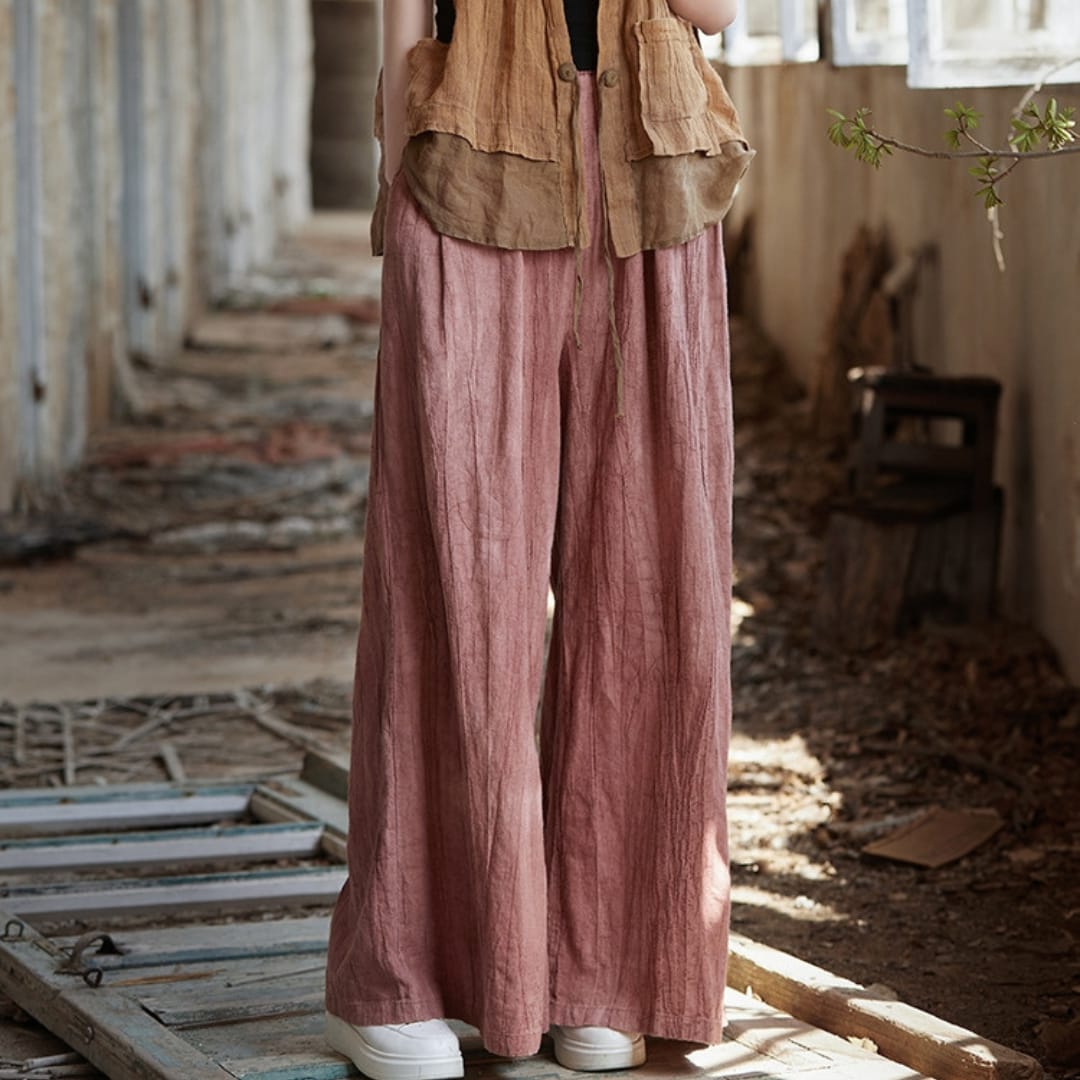 Enjoy effortless comfort with these Women�'s Wrinkled Ramie Cloth Wide Leg Pants, featuring breathable natural fabric, a relaxed drape, and a chic wide-leg silhouette perfect for everyday wear.