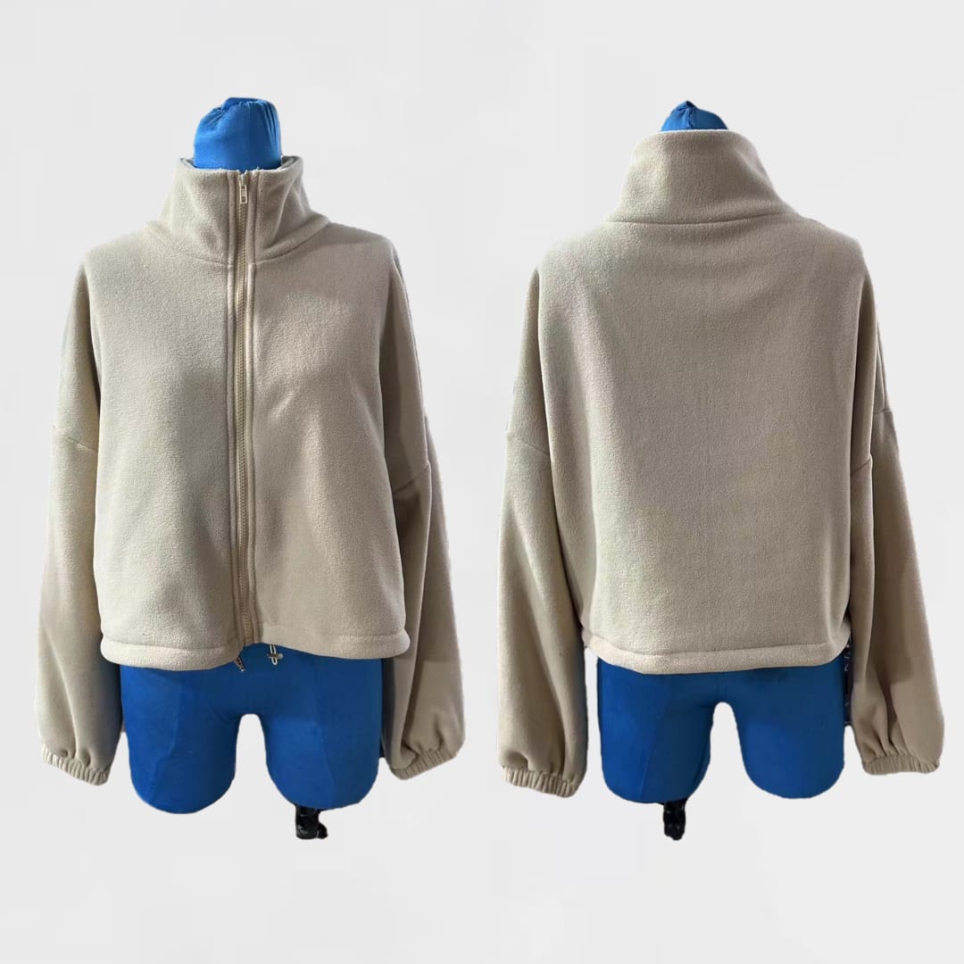 Upgrade your cold-weather wardrobe with our Womens Fall Winter Zip-Up Dropped Shoulder Short Polar Fleece Sweatshirt/Jacket. Crafted from soft, high-quality polar fleece, this sweatshirt/jacket provides exceptional warmth, comfort, and a cozy feel for autumn and winter days. The relaxed dropped shoulder design creates a modern, effortless silhouette, while the zip-up front allows easy layering and versatile styling. Its short length adds a contemporary touch, making it ideal for pairing with jeans, leggings, or casual pants. Perfect for indoor lounging, outdoor walks, or casual outings, this polar fleece sweatshirt/jacket combines functionality, comfort, and style for seasonal wardrobe essentials.