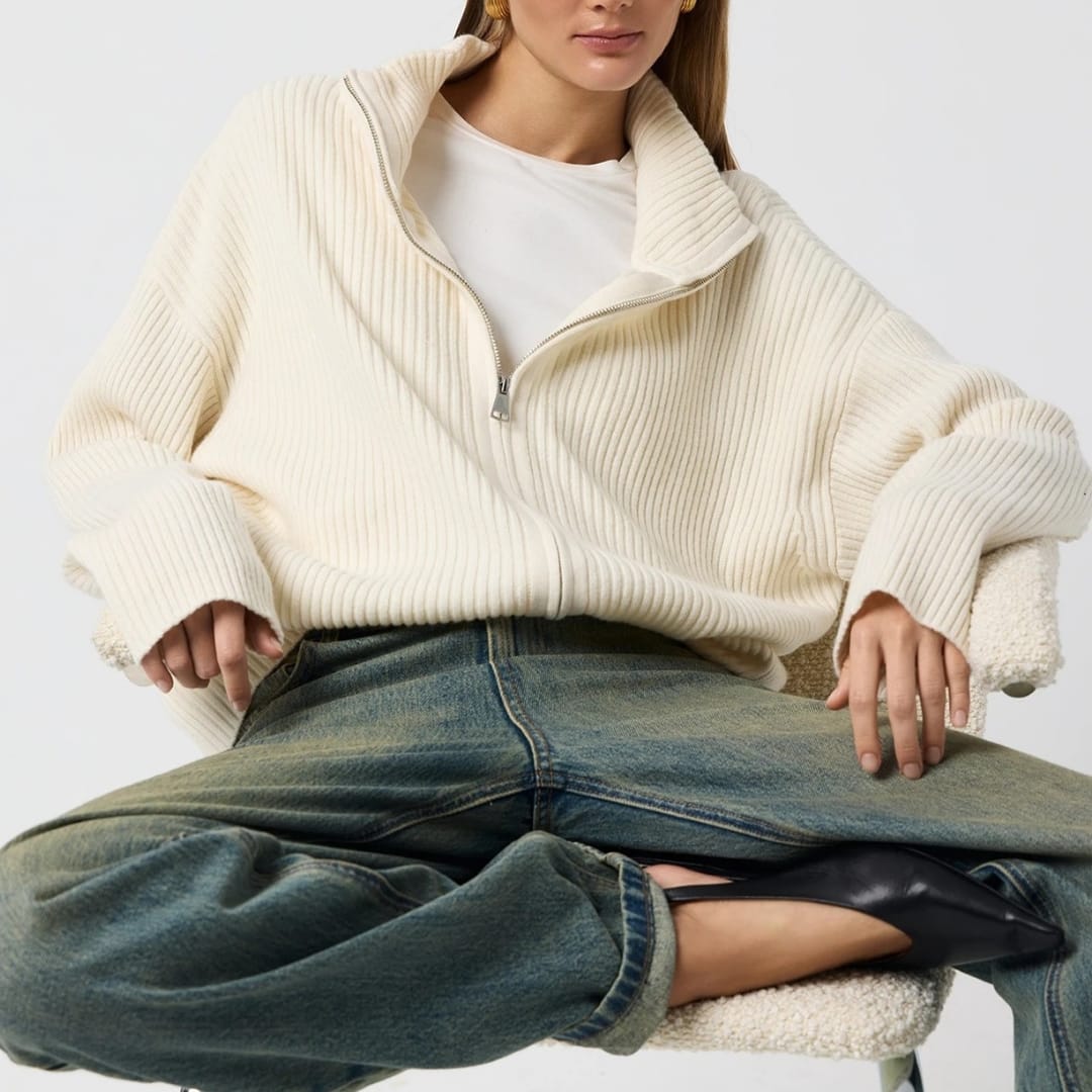Zip Up Thick Ribbed Knitted Cardigan/Jacket